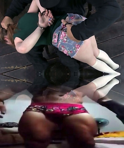 Nice redhead is bound up and attacked in a BDSM way