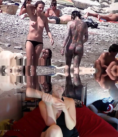Hot from a nude beach spycam with naked skinny chicks