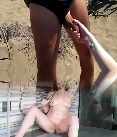 Brunette bitch shaving on the beach before boinking in pov