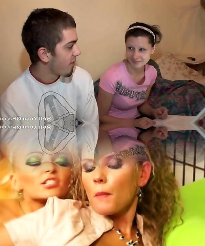 Married woman demonstrating her husband a cuckold as he takes a horn and the wife takes a spunk in her mouth