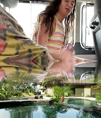 She gush-cums down her own rock-hard cock