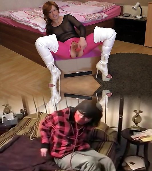 Domina wants his jizz on her thigh high boots
