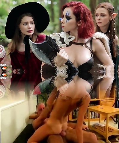 atemberaubende rothaarige schönheiten, die fantasy-heldinnen cosplayen, beinhalten heiße fickszenen in ihrem rollenspiel