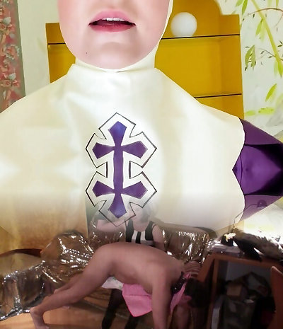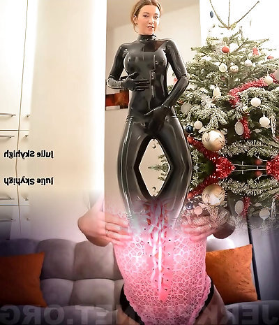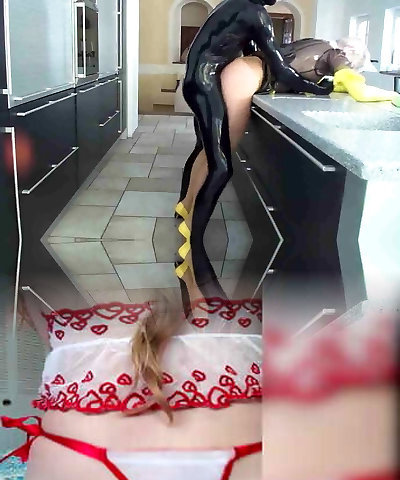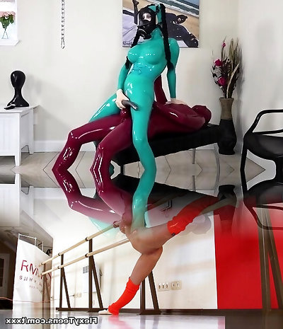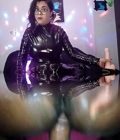 seltsame hellhaarige nymphomanin in latex-kleid gonna polieren ihre feuchte fotze mit einem faux-hahn