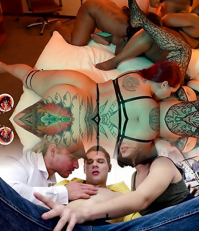 drei hellhaarige teenager haben spaß mit drei dunkel getönten schwänzen in heißem interracial gruppensex