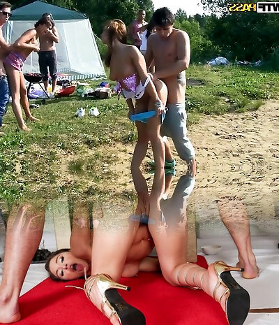 menge von versauten mädchen bekommt freches spielzeug, das in diesem lesbos-sex im freien zerreißt
