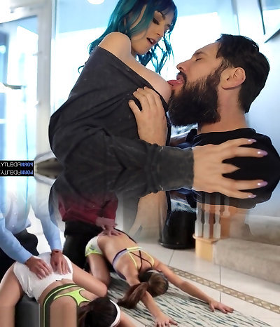 Blue haired chick Jewelz Blu is penetrated by bearded boyfriend