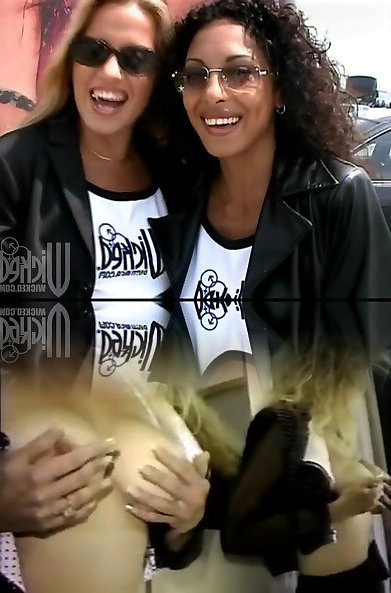 2 bionda teenies condividere un enorme hard-on in un trio allaperto