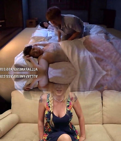 One nasty Asian Milf and her hubby suck nipples of supah skinny Asian girlie