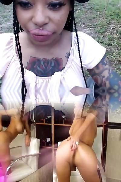 delotta黑皮肤演示她下垂的胸部和脂肪巧克力色的臀部